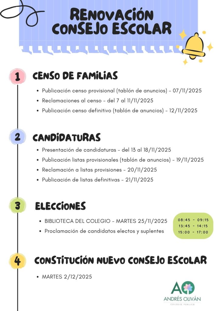 Aquella persona que quiera ser candidato/a parar ser elegido/a como representante de familias del Consejo Escolar, ha de enviar un correo al Equipo Directivo (admin@ceipandresolivan.com), dentro del plazo establecido, para que sea incluido en el listado oficial, así como en las papeletas de la votación.